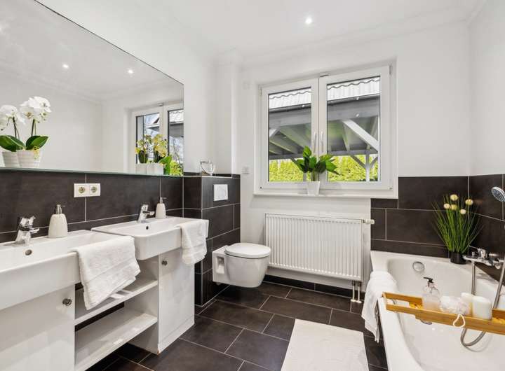 - Modernes Tageslicht-Vollbad mit sep. bodengleicher Dusche und Doppelwaschtisch