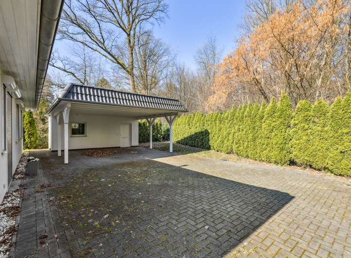 Im Außenbereich finden Sie neben einem Doppelcarport mit Platz für zwei Autos auch einen angrenzenden Schuppen, der Stauraum für Fahrräder, Gartengeräte und mehr bietet. Eine gepflegte Rasenfläche mit einer sonnenverwöhnten Terrasse an der Vorderseite des Hauses lädt zum Verweilen ein