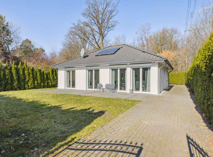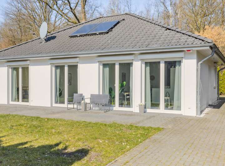 Am Ende einer idyllischen Einfahrt verbirgt sich dieser schöne Bungalow aus dem Baujahr 2018, welcher Komfort, Sicherheit und modernen Wohnstil vereint. Mit einer Wohnfläche von ca. 101 m² und einer Nutzfläche von ca. 49 m² im Dachgeschoss bietet dieses Haus vielfältige Nutzungsmöglichkeiten. Beheizt wird die Immobilie über eine zentrale Gasheizung mit Warmwasserspeicher, unterstützt durch Solarthermie.