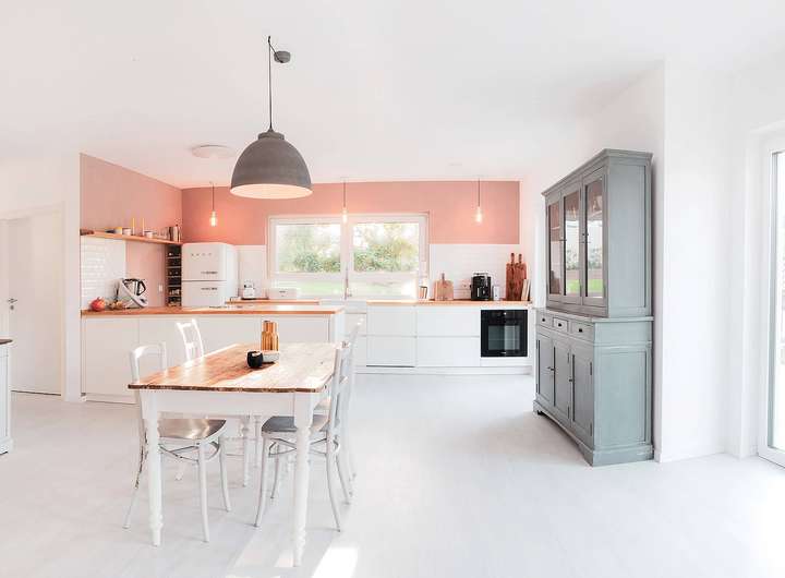 Dieses wunderschöne, großzügige Haus bietet Ihnen 148 m² Wohnfläche auf zwei Etagen und besticht durch seine offene Raumgestaltung und hochwertigen Details. Der offene Wohn-, Ess- und Küchenbereich ist das Herzstück des Hauses und überzeugt durch viele bodentiefe Fenster, die den Raum mit natürlichem Licht fluten und eine angenehme Wohlfühlatmosphäre schaffen.