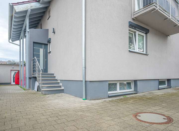 Die drei Etagen des Hauses, UG, EG und OG sind jeweils über verschiedene Eingänge zugänglich.