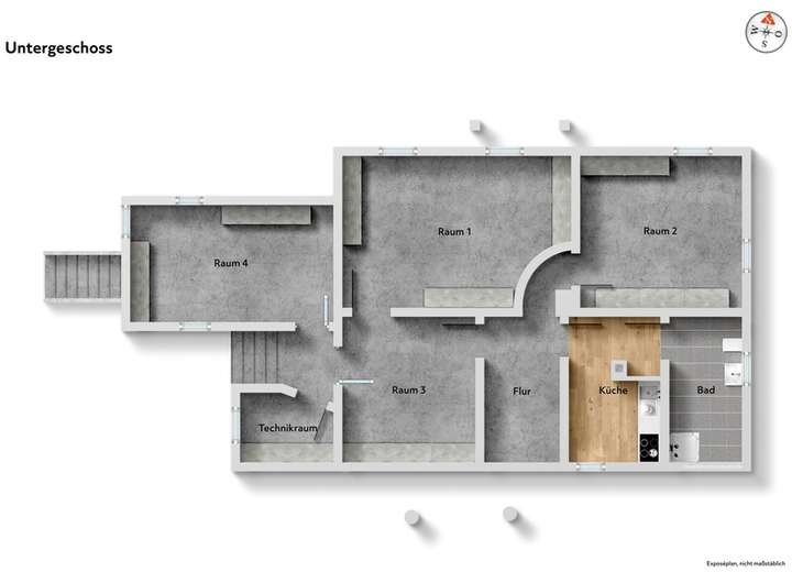 - Souterrain: 3,5-Zimmer, Küche, Bad