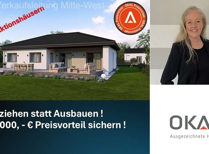 ***Aktion nur gültig bei Abschluss eines Hausvertrages für ein OKAL-Haus der Aktionsserie "Pur" bis zum 31.10.2025. Gutschein gültig für eine OKAL-Markenküche Schüller Halbinsel im Wert von 6.800 EUR inkl. Elektrogeräte.