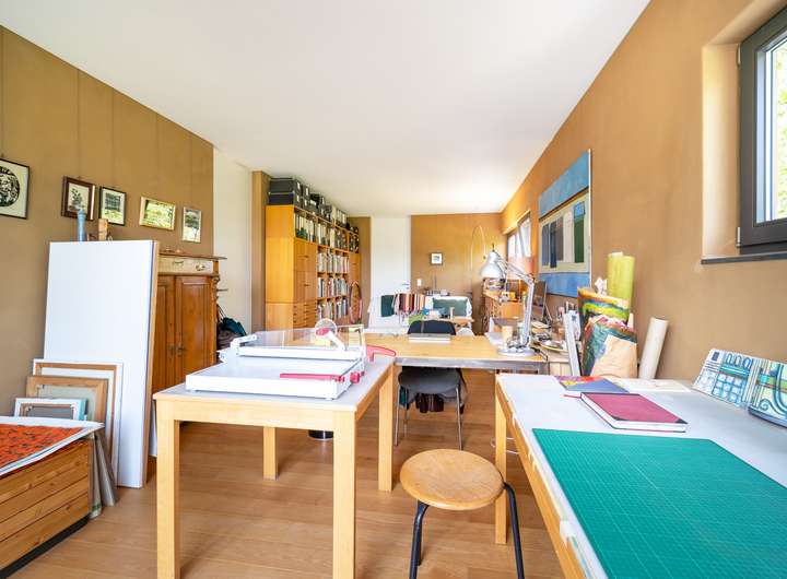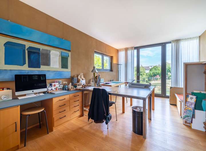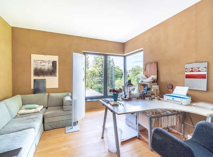 Mit einer Wohnfläche von ca. 250 m² bietet das Haus auf sechs Zimmern Platz für individuelle Lebensentwürfe. In der Eingangsebene empfängt Sie eine großzügige Diele, ein Hauswirtschafts- und Technikraum, ein Gäste-WC und eine großzügige lichtdurchflutete Künstlerwerkstatt.