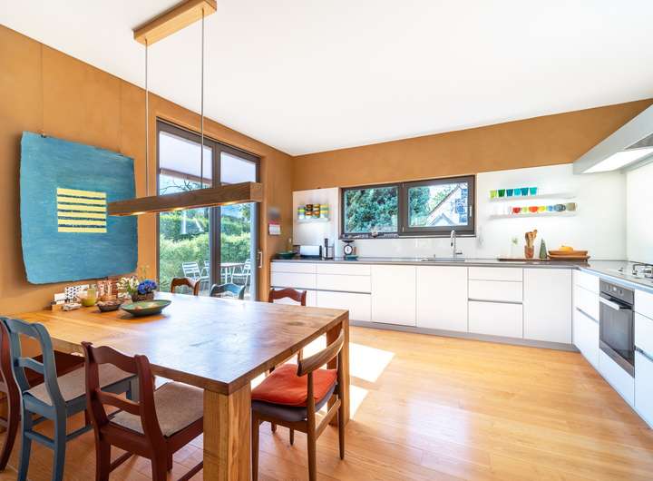 Ein Haus, das nicht nur Wohnraum bietet, sondern ein Lebensgefühl: ökologisch durchdacht, ästhetisch komponiert und mit Liebe zu Material und Detail erbaut. Ein Ort für Menschen, die das Besondere suchen – und zugleich ein Zuhause, das Wärme, Geborgenheit und Weite schenkt.