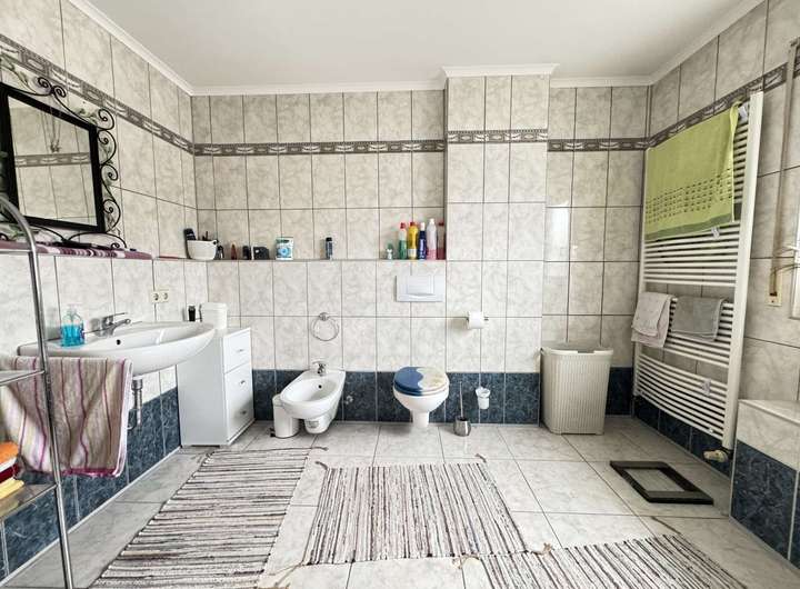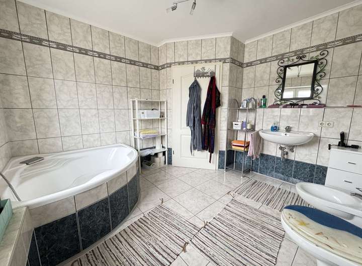 Dieses Haus bietet insgesamt 6 Zimmer, darunter 5 geräumige Schlafzimmer, die ausreichend Privatsphäre für jeden Bewohner garantieren. Das Badezimmer ist praktisch eingerichtet und verfügt über eine Badewanne. Ein zusätzliches Gäste-WC im Erdgeschoss sorgt für zusätzlichen Komfort.