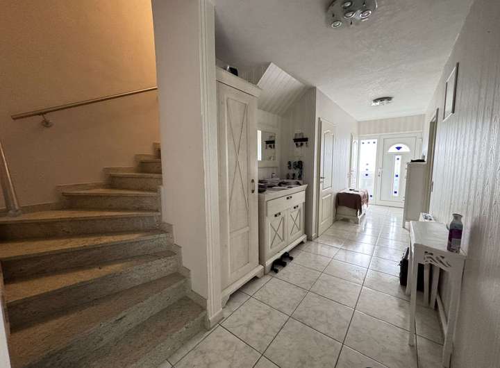 Im Erdgeschoss und Obergeschoss erwarten Sie Fliesenböden, die leicht zu pflegen sind und eine zeitlose Eleganz ausstrahlen. Das Untergeschoss und Dachgeschoss ist mit Laminat ausgestattet, welches für eine gemütliche Atmosphäre sorgt.
