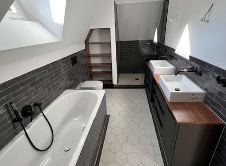 Badezimmer: 1 Badezimmer mit Dusche und Badewanne
