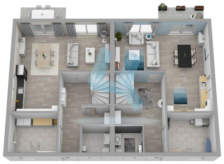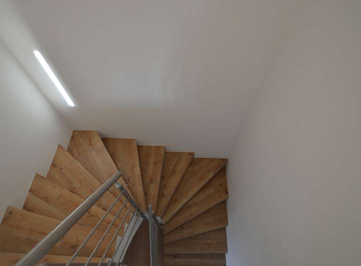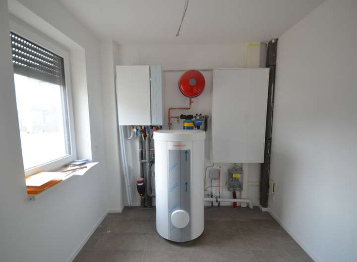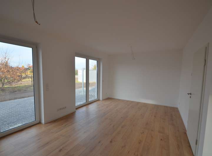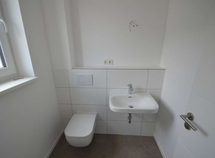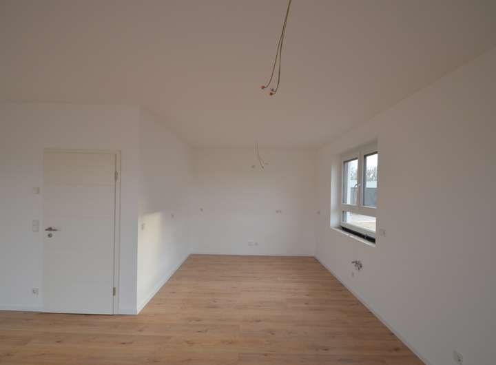 Lästige Heizkörper suchen Sie vergebens, selbstverständlich ist eine komfortable Fußbodenheizung installiert. Die Haushälfte wird mit weißen Innentüren, weiß gestrichenen Putzwänden und Bodenbelägen übergeben.