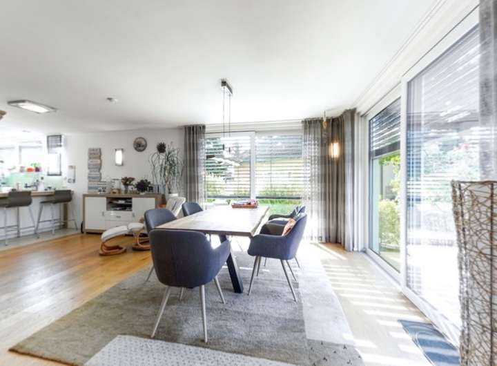 Dieses moderne Einfamilienhaus aus dem Jahr 2013 im Landkreis Rosenheim verbindet hohen Wohnkomfort mit neuester Technik, wie Wärmepumpe und Fußbodenheizung auf allen Etagen inkl. dem Keller. In einer ruhigen Wohngegend gelegen, präsentiert sich dieses hochwertig gebaute und ausgestattete Einfamilienhaus als perfektes Zuhause für Familien oder Paare. Die unmittelbare Nachbarschaft zu Wasserburg am Inn mit seiner historischen Altstadt verbindet auf ideale Weise Einkaufsmöglichkeiten, Bildungsangebote, Nahverkehr, Kultur sowie eine umfassende medizinische Versorgung durch die RoMed Klinik. Herzstück ist der lichtdurchflutete Wohn- und Essbereich mit Panoramaverglasung und Zugang zu zwei sonnigen Terrassen – perfekt für Familie und Gäste. Eine großzügig gestaltete Einbauküche in U-Form bietet viel Platz und verspricht Spaß am Kochen. Im Obergeschoss bieten zwei Kinderzimmer mit Schlafgalerie und das Elternschlafzimmer mit begehbarem Kleiderschrank Rückzugsorte mit Wohlfühlcharakter. Das großzügige Tageslicht-Badezimmer im Obergeschoss mit Wanne, Dusche und Doppelwaschtisch ergänzt sich ideal mit der im Untergeschoss geplanten Sauna samt Dusche – so entsteht eine ganz persönliche Wellness-Oase im eigenen Zuhause. Das Kellergeschoss bietet viel Platz für Ihre persönlichen Dinge, dazu gibt es noch ein kombiniertes HomeOffice-Gästezimmer. In der Garage und im Carport sind Ihre Fahrzeuge bestens geschützt und werterhaltend untergebracht.