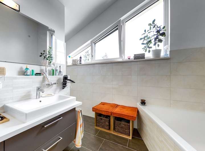 Badezimmer mit Wanne und bodenebener Dusche