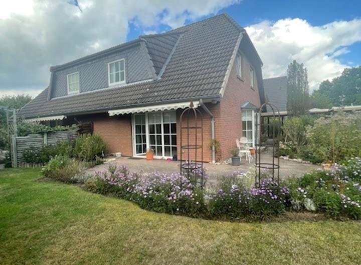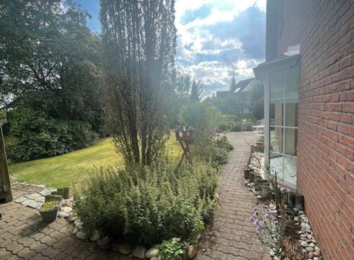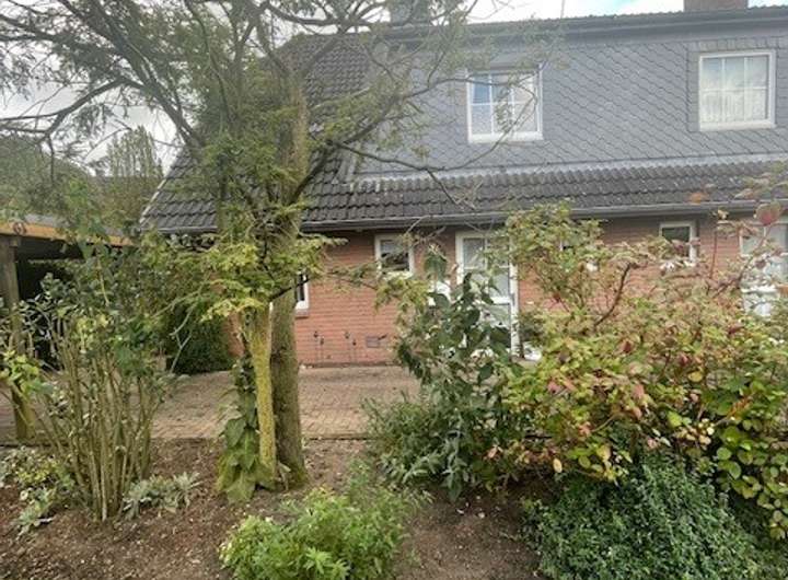 Willkommen in Ihrem zukünftigen Zuhause – einer einzigartigen Oase der Ruhe und Geborgenheit, die modernes Wohnen mit idyllischer Natur harmonisch verbindet. Dieses charmante Doppelhaus, liebevoll im Landhausstil gestaltet, befindet sich auf einem großzügigen Grundstück von etwa 798 m², das gemäß Teilungserklärung in zwei ideelle Hälften aufgeteilt ist. Die angebotene hintere Hälfte liegt am Ende des Gartens und ist von einem malerischen Entwässerungsgraben eingerahmt, der das Grundstück sanft umgibt. Stellen Sie sich vor, wie Entenmamas mit ihren Küken durch den liebevoll gepflegten Garten watscheln – ein zauberhaftes Bild, das das Herz berührt. Der Garten besticht durch seinen sorgfältig ausgewählten Bewuchs, der prächtig gedeiht und zum Verweilen einlädt. Hier können Kinder unbeschwert spielen, Familienfeste feiern oder einfach die Seele baumeln lassen.