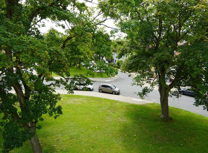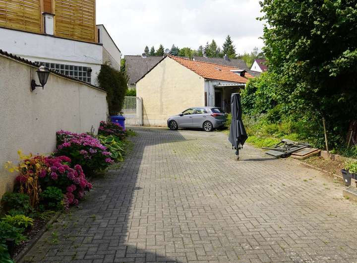 Der Hauseingang liegt besonders ruhig und ist über eine Zufahrt von der parallel verlaufenden, verkehrsberuhigten Straße erreichbar. So genießen die Bewohner sowohl die zentrale Lage als auch die wohltuende Ruhe abseits des direkten Verkehrs.