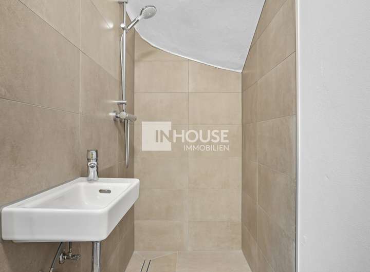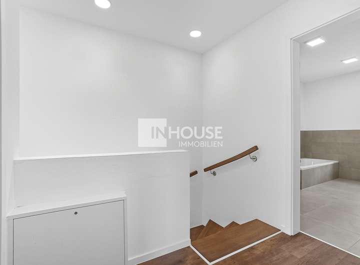 Der Küchenbereich wird noch mit einer hochwertigen Einbauküche (im Mietpreis inkl.) ausgestattet. Außerdem steht der Dachboden als Lagerraum zur Verfügung.