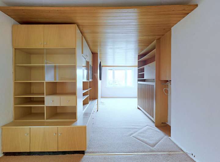 Die zweite Wohneinheit im Dachgeschoss wurde bisher familiär genutzt und verfügt über keine eigene Wohnungstür. Die Aufteilung ist charmant: ein Schlafzimmer mit Gaube zur Straßenseite und einer kleinen Kammer, ein gefliestes Duschbad mit separatem WC, eine kleine Küche sowie ein gemütliches Wohnzimmer nebst Abstellraum mit Fenster und mit Zugang zur rund 10 m² großen Dachterrasse. Von hier aus eröffnet sich ein schöner Blick ins Grüne – ein idealer Rückzugsort für sonnige Stunden.