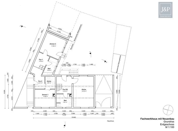 + Direkte Verbindung zwischen Haupthaus und Anbau im Obergeschoss