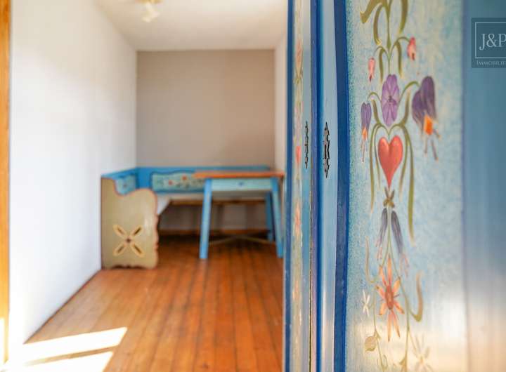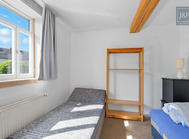 Erschlossen wird das Anwesen über zwei Eingänge: Der Haupteingang führt in das Haupthaus; ein separater Seiteneingang an der linken Gebäudeseite erschließt die Einliegerwohnung im Anbau. Im Obergeschoss sind Haupthaus und Anbau miteinander verbunden, im Erdgeschoss sind die Einheiten derzeit getrennt zugänglich — dadurch bleibt die Nutzung flexibel. Neben einer großen Wohneinheit oder zwei voneinander unabhängigen Wohneinheiten ist auch eine Kombination wie Wohnen und Vermieten durch den Grundriss naheliegend und praktisch vorbereitet.