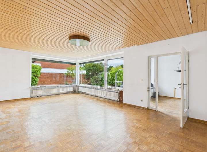 Der charakteristische Bungalow befindet sich in der idyllischen Gartenhofsiedlung von Marienwerder, einem begehrten Stadtteil von Hannover. Die Lage überzeugt durch ihre Ruhe und die unmittelbare Nähe zum malerischen Klosterforst, der zu erholsamen Spaziergängen und Freizeitaktivitäten in der Natur einlädt.