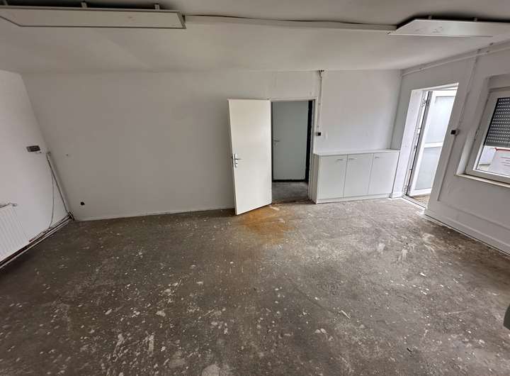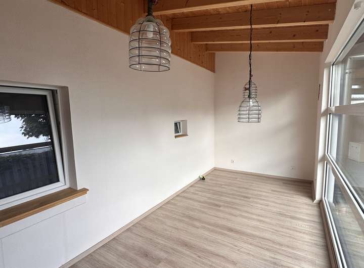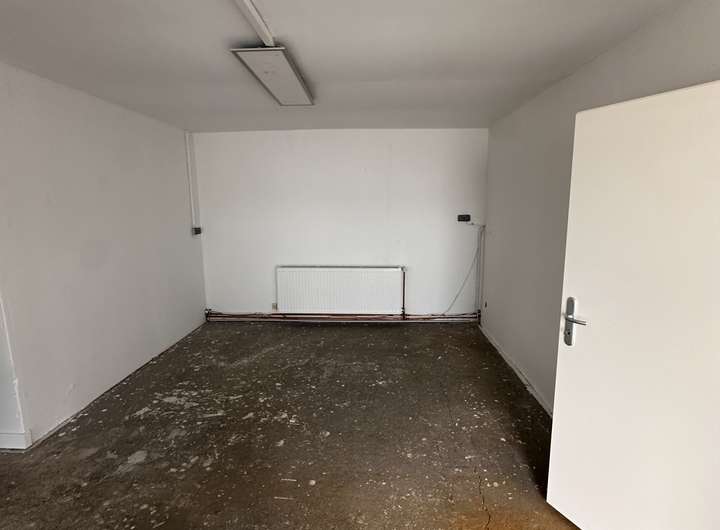 Auch dieser Bereich wurde umfangreich Teilsaniert. Im Bereich an der Straße befindet sich noch ein Raum mit Holzboden, die übrigen Böden sind aus Estrichbeton.