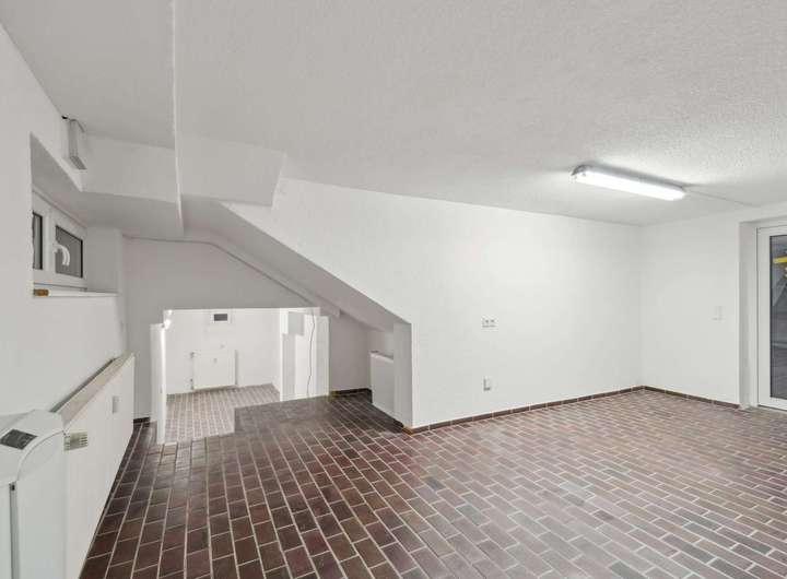 Das Haupthaus mit ca. 239 m² Wohnfläche teilt sich im Erdgeschoss wie folgt auf: Ein großer Eingangsbereich, verschiedene Heizungs-/Abstellräume und ein großzügiger Raum (mit separatem Zugang vom Hof) der z.B. als Büro oder Werkstatt genutzt werden kann.