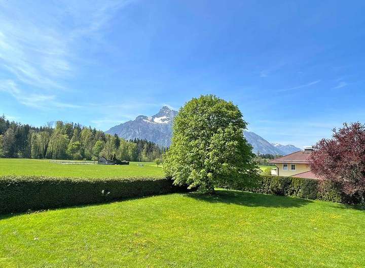 Der Blick vom Grundstück erstreckt sich sowohl auf die majestätische Festung Hohensalzburg als auch auf die Salzburger Hausberge, den Untersberg und den Gaisberg.