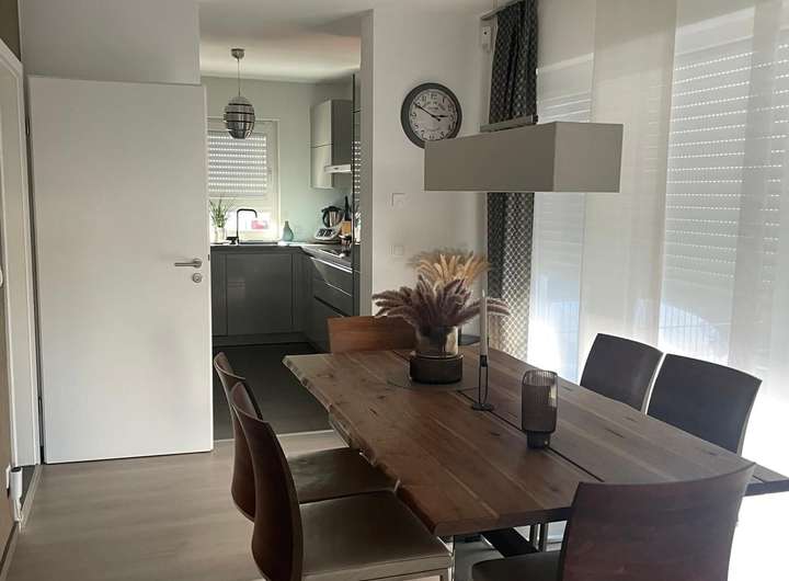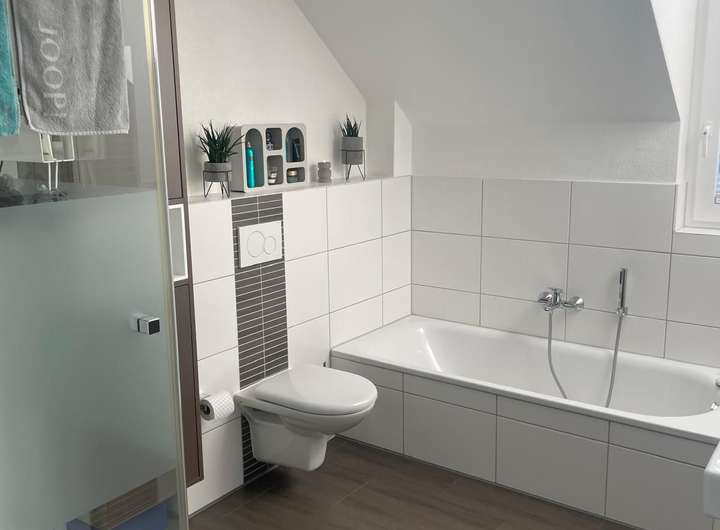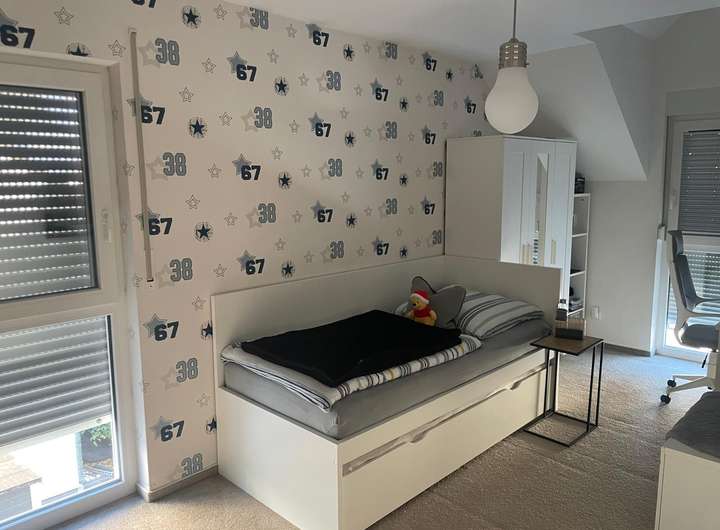 Das Dachgeschoss ist bereits ausgebaut und erweitert die Wohnfläche optimal. Für höchsten Komfort sorgen eine teilweise Klimatisierung, elektrische Rollläden sowie eine hochwertige Nolte-Einbauküche, die im Kaufpreis enthalten ist.
