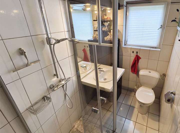 Für den täglichen Komfort stehen Ihnen zwei Bäder zur Verfügung: Ein modernes Duschbad, sowie ein gepflegtes Wannenbad, das zwar noch etwas Sanierungsbedarf aufweist, aber mit etwas Liebe schnell wieder in neuem Glanz erstrahlen kann. Eine großzügige Diele verbindet alle Räume miteinander und schafft einen offenen, freundlichen Empfangsbereich. Von hier aus gelangen Sie bequem über die Treppe ins Obergeschoss und in den voll ausgebauten Keller.
