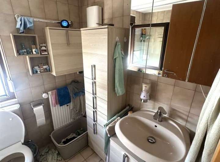 1969 wurde dieses Wohnhaus in massiver Bauweise errichtet. Der Dachgeschoßausbau erfolgte 1985. Das Haus ist vollunterkellert mit Kelleraußentreppe. Beheizt wird das Haus über eine Öl-Zentralheizung von 1991, die Warmwasserversorgung erfolgt über E-Durchlauferhitzer. In den 1980er Jahren wurden isolierverglaste Holzfenster eingebaut. Und das Bad im OG saniert. Die Böden in den Wohnungen sind mit Laminat und PVC ausgestattet.