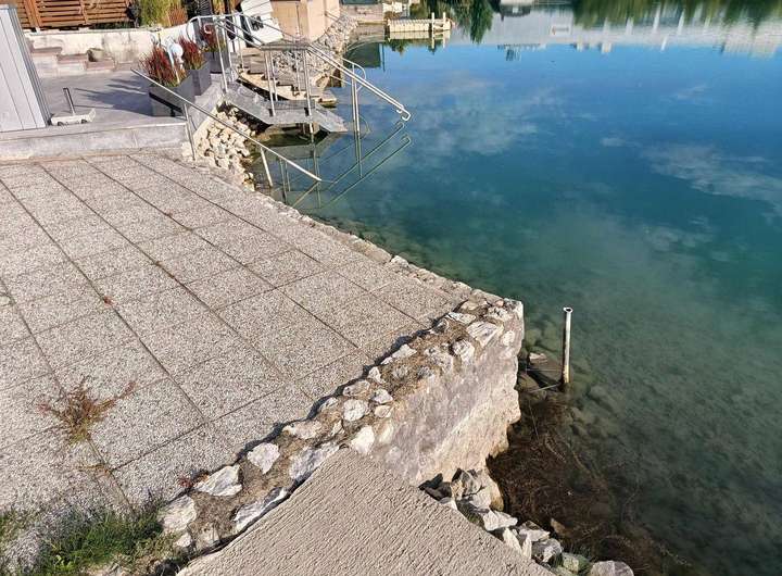 Verkaufe einen voll aufgeschlossenen Eigen- und Baugrund (Fahnengrundstück), direkt am Badesee mit einem eigenen Seezugang in Korneuburg West. Die Gesamtfläche beträgt ca. 720m2 (Grundstück inklusive Seeanteil). Ein kleines schmuckes Haus - ca. 55m2 lädt dazu ein, den ganzen Sommer dort zu verbringen - Urlaubsfeeling pur. Das Häuschen, vormals Mobilheim, wurde ausgebaut, gedämmt und um zwei Zubauten mit Mauersteinen vergrößert. Die Gegensprechanlage zur Straßenseite, sowie der Zugang zum Haus wurden dieses Jahr neu gestaltet. Raumaufteilung: 1 Wohnzimmer, 1 Schlafzimmer, 1 offenes Nebenzimmer, offene Küche, 1 Bad mit WC und Dusche sowie eine überdachte Veranda, und vor dem Haus lädt eine ca. 50m2 große Terrasse zum Verweilen ein. Am Strand ist eine ca. 25m2 große Liegefläche mit Stiege in den Badesee. Das Grundstück ist dem öffentlichen Kanal angeschlossen, Strom, Wasseranschluss vorhanden, Gas steht nicht zur Verfügung. Ein eigener Brunnen sorgt für die Gartenbewässerung. Das Haus ist mit keiner Heizanlage ausgestattet, die Liegenschaft wurde nur im Sommer genutzt. Zwei Gerätehütten aus Holz sowie ein Gebäude aus Mauerwerk neben dem Haus sorgen für großen Stauraum. Bei dieser Immobilie handelt es sich um ein Sonderbauland - die Bebauungsfläche kann auf 2 Etagen je 80m2 ausmachen + 100m2 Keller. Hausbau jederzeit möglich.