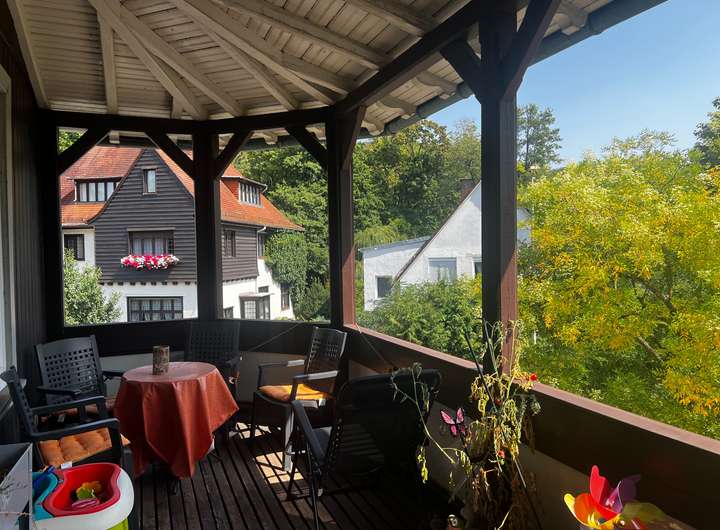 Das Obergeschoss beherbergt eine großzügige 4-Zimmer-Wohnung mit ca. 104 m² Wohnfläche, großer Wohnküche und einer nach Süden ausgerichteten Veranda.
