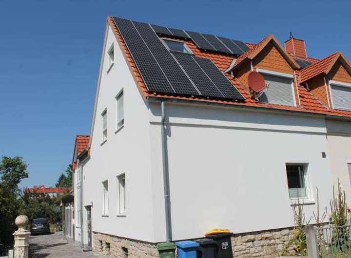 auf dem Dach der straßenseitigen Bebauung und auf dem Schuppen/Carport