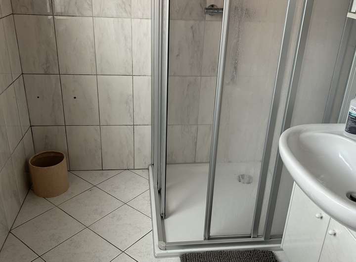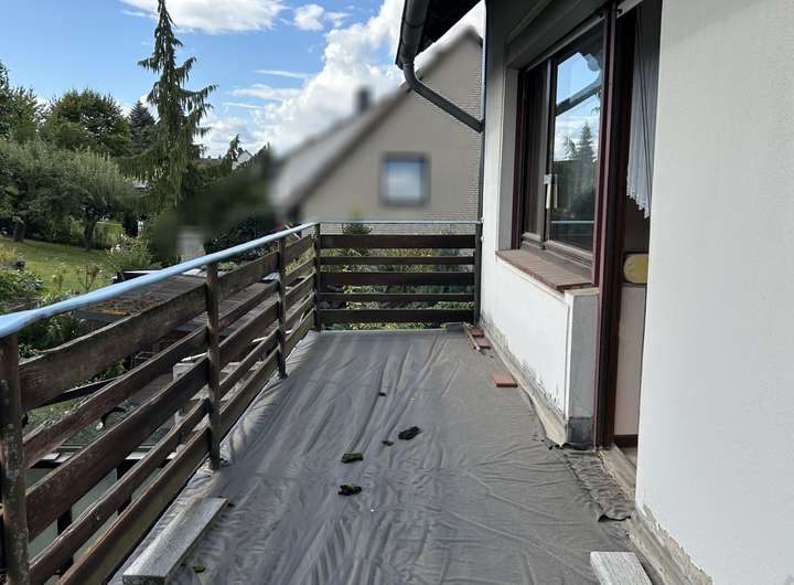Die Immobilie hat einen umfassenden Bedarf an einer Neugestaltung - neben Wand- und Bodenbelägen zählen hierzu die Elektrik, Fenster mit Rollläden sowie Verbesserungen der Wärmeeffizienz (u. a. Heizung, Dämmung der obersten Geschossdecke). Bereits an dieser Stelle soll darauf hingewiesen sein, dass im Keller teils Feuchtigkeitsschäden in den Wänden sichtbar sind. Außerdem muss der Oberbelag des Balkons erneuert werden.