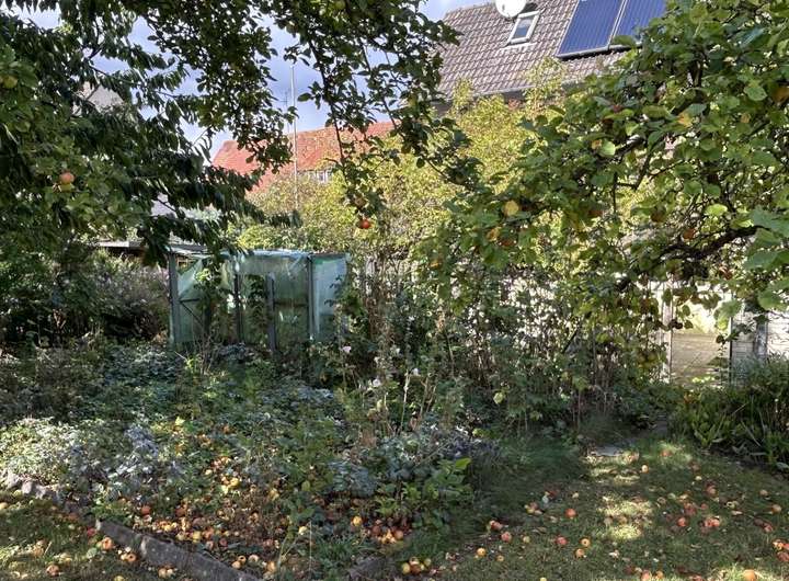 Das eingewachsene Eigentumsgrundstück mit Obstbaumbestand und Rasenfläche hat eine Größe von 725 m².