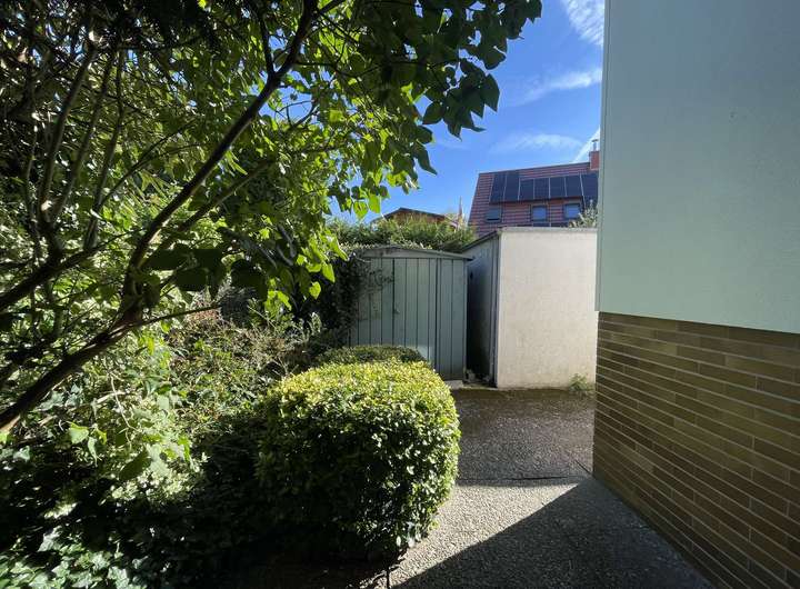 Die Umgebung ist geprägt von Wohnhäusern, kleinen Gärten und viel Grün. In unmittelbarer Nähe befinden sich alle wichtigen Einrichtungen des täglichen Bedarfs: Supermarkt, Apotheke sowie Schulen und Kitas sind gut erreichbar. Auch Ärzte, Café und Restaurants befinden sich in der näheren Umgebung.