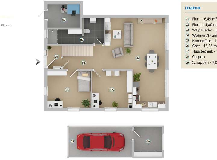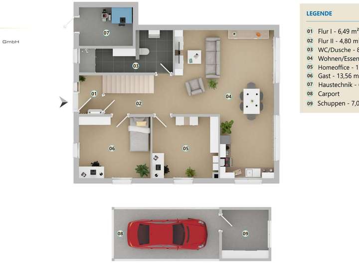 – Carport: Stellplatz direkt am Haus (Nutzfläche)