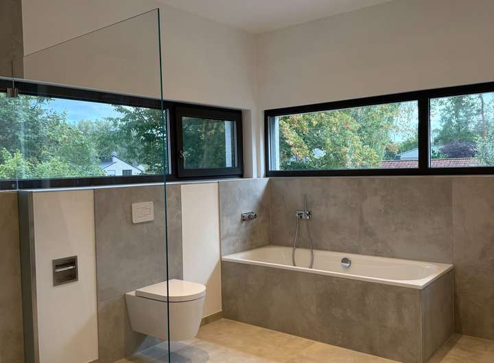 Diese Immobilie verbindet moderne Architektur mit durchdachten Details und zeitgemäßer Technik. Die Bauhausarchitektur zeichnet sich durch klare Linien, bodentiefe Fenster und eine offene Raumgestaltung aus, die dem Haus eine außergewöhnliche Großzügigkeit verleiht. Die Ausstattung erfüllt höchste Ansprüche: Im gesamten Haus sorgt eine Fußbodenheizung, betrieben durch eine moderne Wärmepumpe, für behagliche Wärme. Ergänzt wird diese durch eine leistungsstarke Solaranlage (12,6 kW/p) mit 10 kWh Speicher und Notstromversorgung, die die laufenden Energiekosten äußerst gering hält. Das Smarthome-System bietet Ihnen modernsten Komfort und Sicherheit. Eine Kameraüberwachung, Alarmanlage und Gegensprechanlage mit Fingerabdruckscanner sorgen für Schutz und Kontrolle. Die Gartenbeleuchtung sowie die automatische Bewässerungsanlage lassen sich bequem per App steuern. Die maßangefertigte Ballerina-Einbauküche ist ein echtes Highlight. Mit einer eleganten Keramik-Arbeitsfläche, einem Bora-Induktionskochfeld mit integriertem Abzug und einer großen Kochinsel vereint sie Funktionalität mit stilvollem Design. Insgesamt drei Bäder, alle hochwertig ausgestattet mit bodentiefen Duschen, modernen Armaturen und edlen Fliesen, sorgen für höchsten Komfort. Das Masterbad begeistert zusätzlich mit einer Badewanne und einem Doppelwaschtisch. Die Schlafzimmer sind großzügig geschnitten, lichtdurchflutet und bieten teilweise direkten Zugang zu eigenen Terrassen. Das Masterbedroom verfügt zudem über eine praktische Ankleide. Der Boden ist in allen Wohnbereichen mit strapazierfähigem, modernem Designvinyl verlegt, während die ca. 2,80 m hohen Decken den offenen und luftigen Charakter der Räume zusätzlich betonen. Sämtliche Fenster sind mit elektrischen Raffstores oder Rollläden ausgestattet und verfügen über integrierte Fliegengitter. Besonders hervorzuheben ist die großzügige Doppelgarage, die beheizbar ist und über direkten Zugang zum Haus verfügt. Sie bietet nicht nur Platz für zwei Fahrzeuge, sondern auch für Waschmaschine, Trockner und Gartengeräte. Der Außenbereich besticht durch seine Weitläufigkeit. Mehrere Terrassen – insgesamt fünf – laden zu entspannten Stunden im Freien ein, während der große Garten dank automatischer Bewässerung stets gepflegt erscheint. Die Zufahrt zum Haus erfolgt über eine imposante Einfahrt, die über ein elektrisches Tor gesichert ist und zusätzliche Stellplätze bietet. Dieses Haus vereint exklusive Ausstattung, moderne Technik und durchdachtes Design – eine perfekte Symbiose für Menschen, die Wert auf Stil, Komfort und Nachhaltigkeit legen.