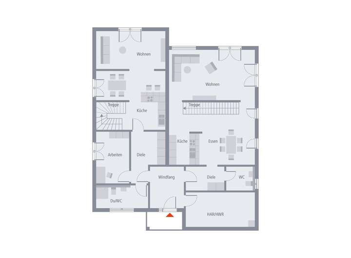 Dieser Architektenentwurf ist ein Planungsvorschlag und dient der Inspiration und Orientierung. Grundrisse, Architektur-Extras, Ausbau- und Effizienzhaus-Stufen werden individuell an Ihre Wünsche und Bedürfnisse angepasst.