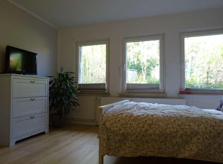 Wird die Küche im Anbau nicht benötigt, so kann mit wenig Aufwand ein weiteres Schlafzimmer geschaffen werden.