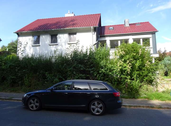 Auf dem ca. 906 m² großen Grundstück wurde 1955 ein Haus in Massivbauweise erbaut, welches 1997 um einen Anbau erweitert wurde.
