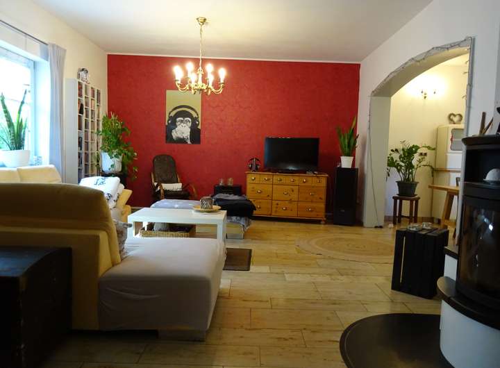 Ihnen stehen somit insgesamt 222 m² Wohnfläche zur Verfügung, wovon sich ca. 133 m² in dem größeren Bereich und ca. 89 m² im Anbau befinden.