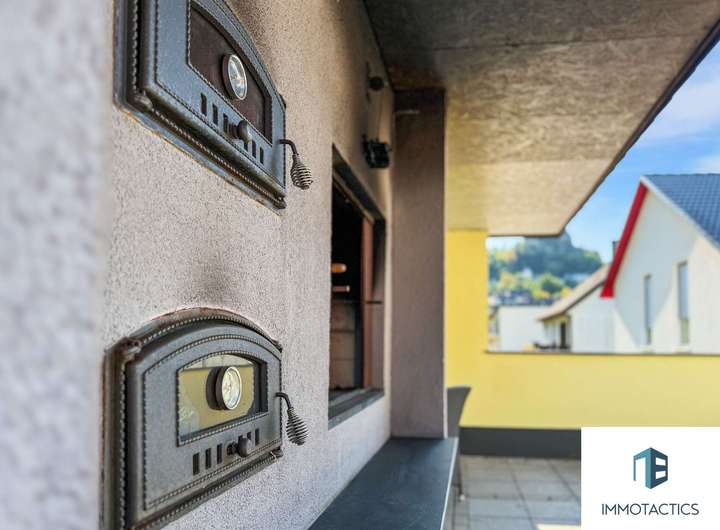 Ein besonderes Highlight ist der große, halbkreisförmige Balkon mit Blick ins Grüne – ein Ort zum Durchatmen und Genießen. Ein weiterer, offen gestalteter Balkon ergänzt den Außenbereich und sorgt für noch mehr Lebensqualität unterm Dach.