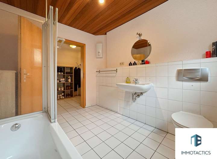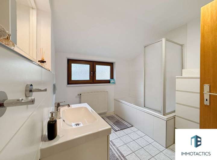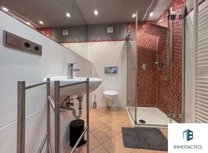 Die Küche ist mit hochwertigen Elektrogeräten ausgestattet und bietet viel Arbeitsfläche sowie Stauraum – ideal für leidenschaftliche Hobbyköche. Neben einem eleganten Tageslichtbad mit Badewanne und Bidet steht ein weiteres Badezimmer mit Dusche zur Verfügung – ideal für den Alltag mit mehreren Personen. Die großzügig geschnittenen Zimmer lassen sich flexibel als Schlaf-, Kinder-, Arbeits- oder Hobbyzimmer nutzen. Diese Etage eignet sich besonders für Familien oder Paare mit Platzbedarf und Wunsch nach einem stilvollen Wohnambiente.