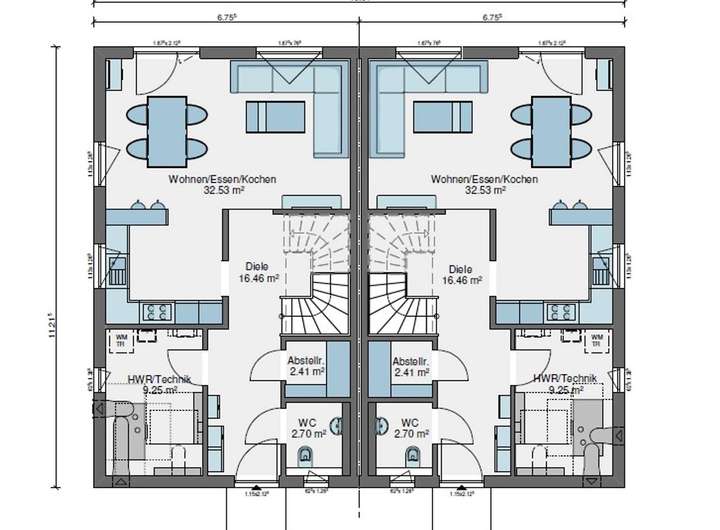 Die Doppelhaushälfte erstreckt sich über 2 Etagen und überzeugt mit einem durchdachten Grundriss.