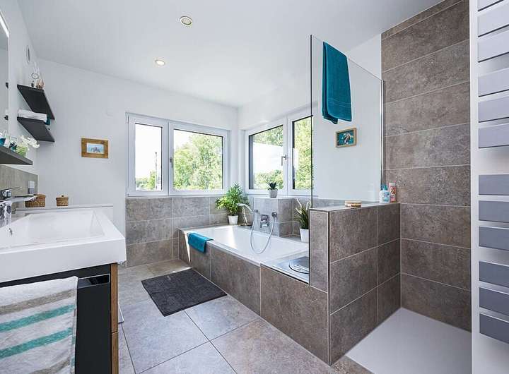 - Badezimmer mit Dusche und Badewanne