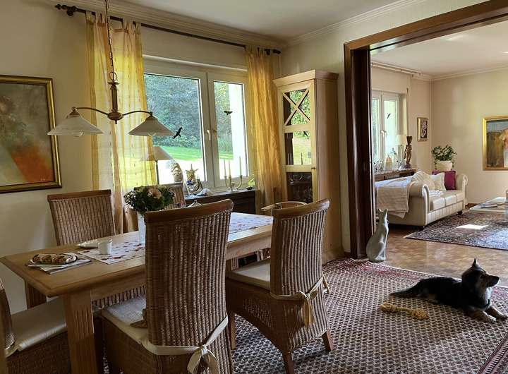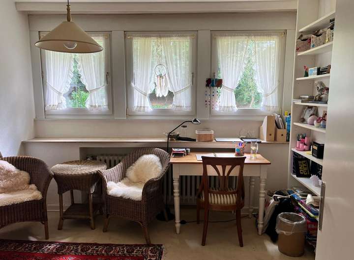 Bei dem zweistöckigen Einfamilienhaus handelt es sich um ein wunderschönes Haus im Grünen, aber dennoch in der Stadt. Es ist teilmöbliert und kann von einer Familie oder einer 3-4er WG ab sofort bezogen werden. Zwei Badezimmer und zwei separate Gäste-WC zählen neben sieben einladenden Zimmern zu dem Objekt. Das Dach ist isoliert und wurde samt Badezimmer neu ausgebaut. Das Haus ist mit seinen 3 Schlafzimmern im 1. OG und einem Schlafzimmer im DG auch für WGs geeignet. Eine Einbauküche im EG sowie ein Waschkeller stehen Ihnen außerdem zur Verfügung. Das Haus wurde im Jahr 1955 erbaut und 2017 saniert (neues Dach, isolierte Außenwände etc.) Die Kaltmiete für das hier angebotene Haus liegt bei monatlich 1.666 Euro, was einem Quadratmeterpreis von 7,7 €/qm entspricht. Sie schließt ein, dass die neuen Mieter:innen sich eigenverantwortlich um den Garten kümmern (ein elektrischer Rasenmäher existiert). Welche Möbel behalten und welche eingelagert werden sollen, können die neuen Mieter:innen in Absprache mit der Eigentümerin bestimmen. Auch kurze Vermietungsdauern sind (etwa bei eigenem Hausbau) möglich. Das Haus selbst steht ausdrücklich NICHT zum Verkauf. Nur ernst gemeinte Miet-Interessenten, bitte. Besichtigungen sind vom 27.-30. Dezember vor Ort möglich. Eine positive Schufa-Auskunft ist Voraussetzung für eine Besichtigung.