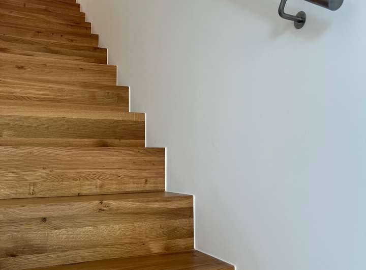 Ankommen Das Wohnhaus wird durch den bepflanzten Vorgarten von der Straße abgesetzt und seitlich über die Grundstückseinfahrt erschlossen. Man gelangt in einen repräsentativen Eingangsbereich. Essen und Wohnen Zoniert durch die zentral liegende Treppe, erstreckt sich das helle Wohnzimmer mit fließendem Übergang in den eigenen Garten. Auf der anderen Seite der Treppe entsteht ein Koch-und Essbereich mit zahlreichen Gestaltungsmöglichkeiten. Schlafen Im ersten Obergeschoss befinden sich drei Schlaf- bzw. Arbeitszimmer sowie ein großes Badezimmer mit Badewanne. Das zweite Geschoss ist als Staffel- geschoss ausgebildet. Hier ist Raum für ein großzügiges Doppelbett, ein luxuriöses Duschbad, eine Ankleide sowie einen kleinen multifunktionalen Vorraum, der für verschiedene Zwecke genutzt werden kann (Homeoffice, Heimtrainer, Leseecke etc.) Souterrain Das Untergeschoss kann optional mit einem weiteren Schlafzimmer und Duschbad ausgestattet werden.
