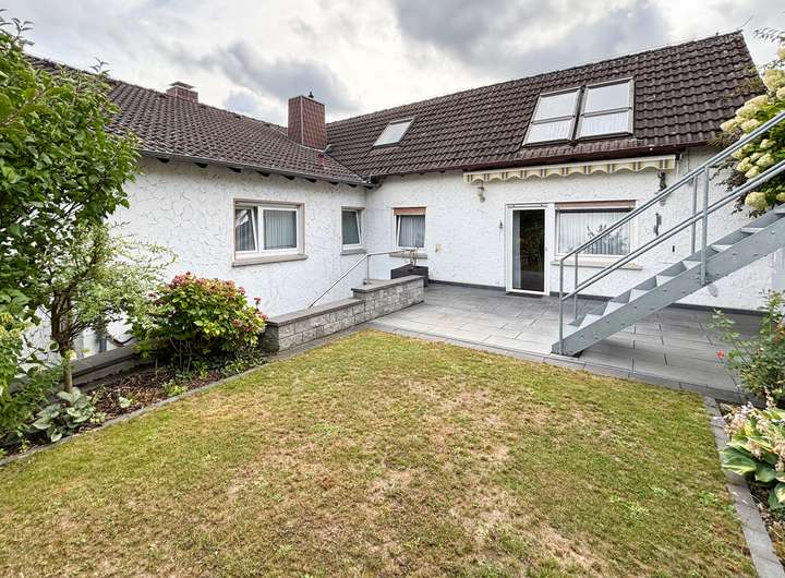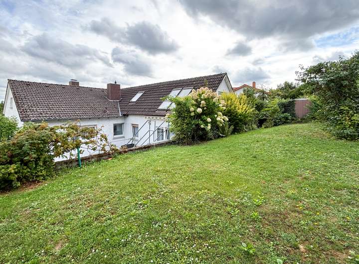 Das Zweifamilienhaus wurde im Jahr 1960 in massiver Bauweise errichtet und im August 1972 durch einen Anbau erweitert, wodurch zusätzlicher Wohnraum entstand. Die Immobilie gliedert sich in zwei Wohneinheiten: eine großzügige Erdgeschosswohnung mit Anbau sowie eine praktische Souterrainwohnung.