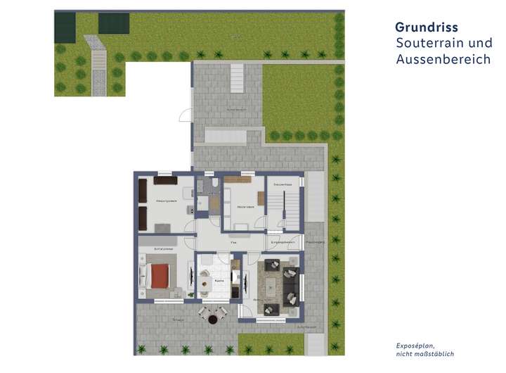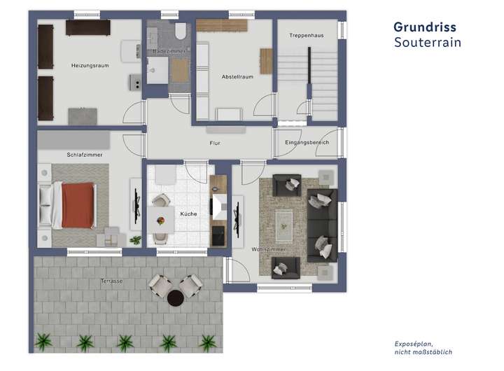 Die Souterrainwohnung mit ca. 67 m² Wohnfläche bietet ein gemütliches Wohnzimmer mit direktem Zugang zur Terrasse, ein Schlafzimmer, eine Küche und ein Badezimmer. Ergänzend stehen im Souterrain der Heizungsraum sowie ein Abstellraum zur Verfügung.