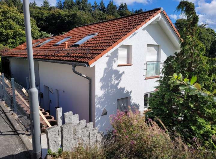 Doppelhaushälfte in Hangbauweise, mit Zugängen oben und unten, großzügige Raumaufteilung, wertige Ausstattung.