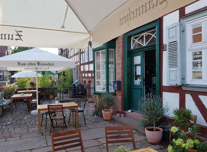 Bis Mitte 2025 wurde hier ein gemütliches Café betrieben, Teile des Inventars sind noch vorhanden. Der hübsche Erker mit Blick auf den Platz ist ein echter Hingucker und verleitet Besucher zum Innehalten.